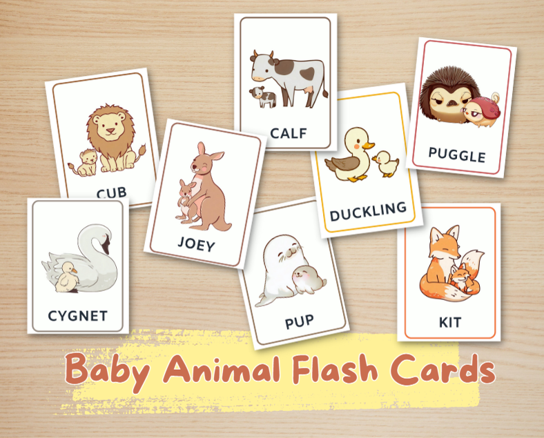 Printable Baby Animal Flashcards (Free Printable Coloring Book Included!)